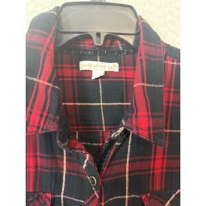 Red and Black plaid button-down shirt with silver, Size L Westport 1962