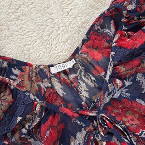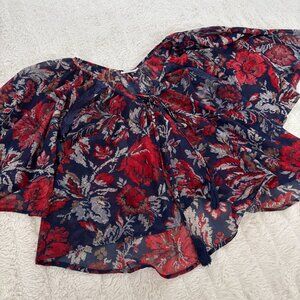 Red and Blue Floral Flowy Blous