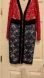 Elegant Venus dress featuring red lace top and blue lace skirt. Stylish zipper front.