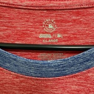 Red and blue Phillies raglan t-shirt with logo.