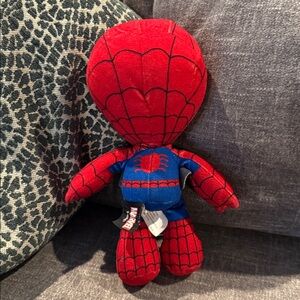 Adorable red and blue spider-themed plush toy. Perfect for fans and collectors.