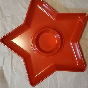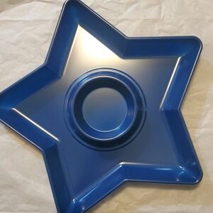 Set of star-shaped serving trays in vibrant red and blue. Perfect for parties and gatherings.
