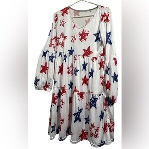 Red and Blue Stars Women's Scoop Neck Casual Flowy Dress S