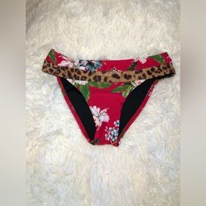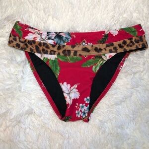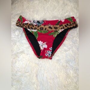 Dive into style with this striking bikini featuring a vibrant red base and a bold brown leopard print waistband. The medium-width band offers a comfortable fit, making it perfect for a day at the beach or pool.