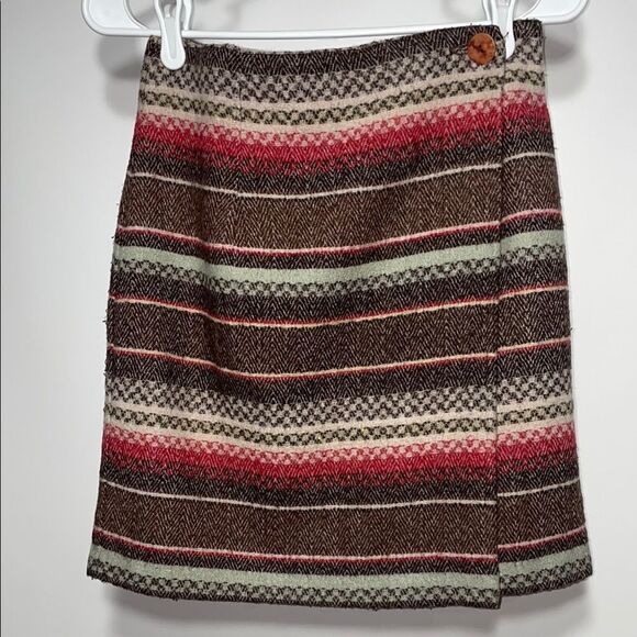 Red and Brown Mini Wrap Skirt for Casual Occasions
