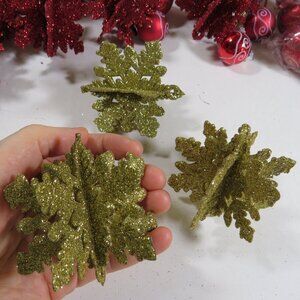 (7) Snowflakes 4-D Warm Red 3" x 3" plastic, glittered SHATTER PROOF ORNAMENTS