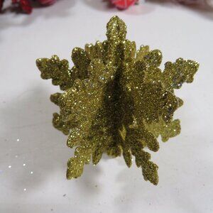 (3) Snowflakes 4-D Gold 3" x 3" plastic, glittered SHATTER PROOF ORNAMENTS