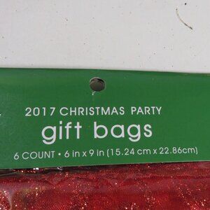 (6) Fabric Gift Bags Red with glitter, drawstring closure 6" x 9" NEW (stays in package)