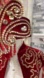 This stunning red dress is adorned with intricate gold embellishments, making it perfect for a wedding guest. The sleeveless design and mandarin collar add a touch of elegance to this opulent piece.