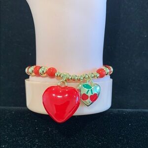 Elegant bracelet featuring vibrant red and gold tones with charming heart accents. Perfect for adding a touch of color to any outfit.