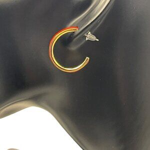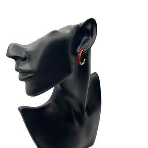 Add a touch of elegance to your outfit with these beautiful Red and Gold Tone Enamel C Hoop Earrings. The intricate design of the enamel material adds a unique charm to the classic hoop style, making them perfect for any occasion. These earrings are a must-have for any fashion jewelry collection and are sure to impress. Whether you're looking for a gift for a loved one or simply want to treat yourself, these earrings are the perfect choice. Don't miss out on the opportunity to add these stunning Red and Gold Tone Enamel C Hoop Earrings to your collection today.