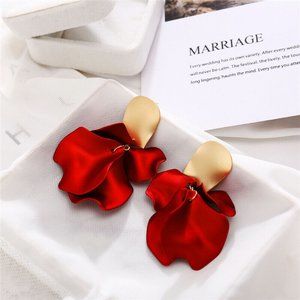Red and Gold-Tone Drop Earrings 3in. x 2 in. Gorgeous deep red color