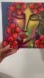 This captivating painting features a stylized face surrounded by vibrant red and green flowers, blending modern and folk art elements. The serene expression and fluid lines create a harmonious composition, making it a striking addition to any art collection.