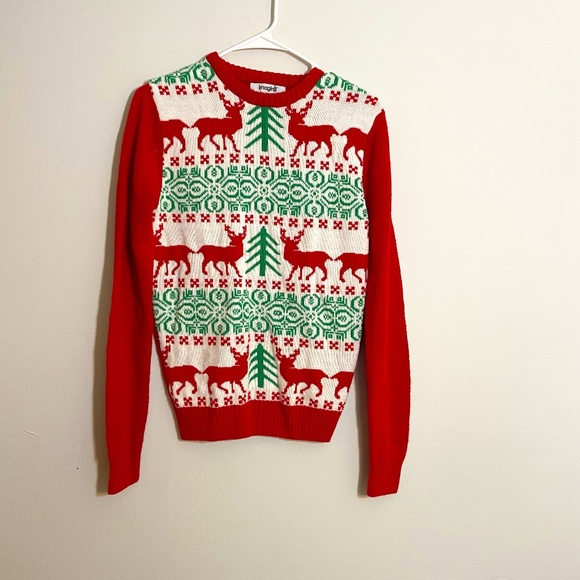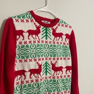 Red and Green Holiday crewneck sweater Deer and tree print Size Small
