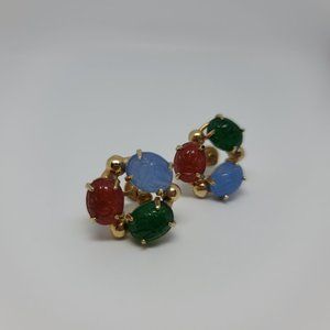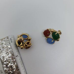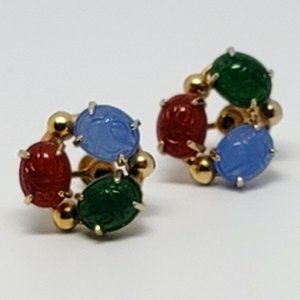 Red and Green Scarab 3 stone Earrings in a Trio Design. Clip ons