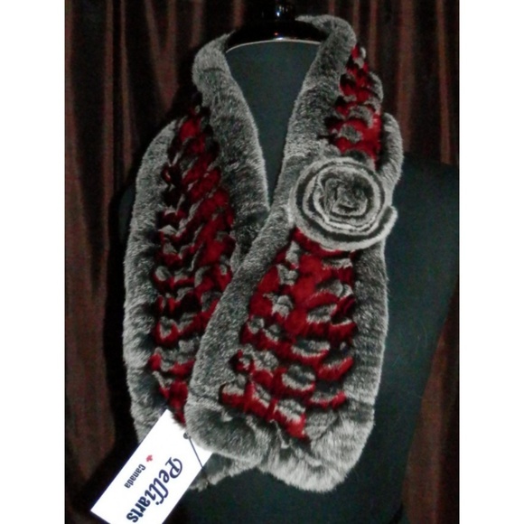 Knitted Rex Rabbit Pull Through Scarf With Rosette