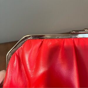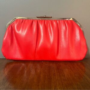 Red and Navy blue vintage clutch purse with gold tone clasp.