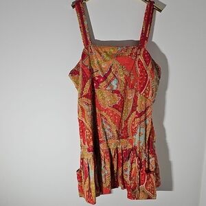 Red and Orange Paisley Sundress, Top, Coverup. By UNIQUE. Size 22/24.
