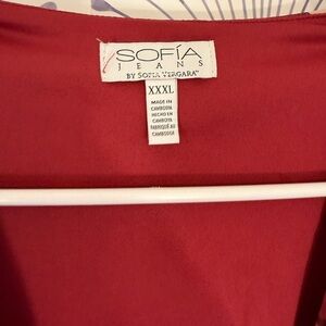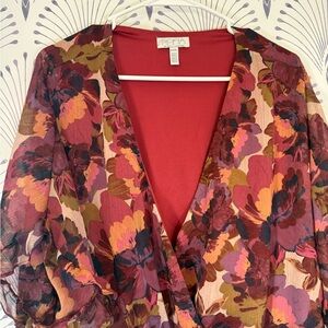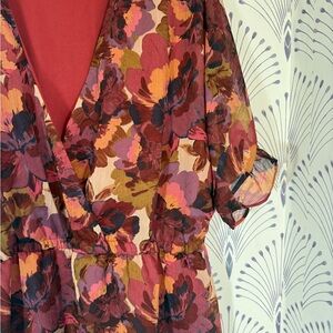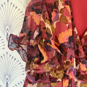 Red and Orange Wrap Ruffled Blouse 3/4 Sleeve