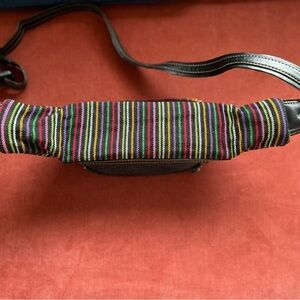 This vibrant crossbody bag showcases intricate embroidery in red and pink, featuring stylized human figures in a traditional folk art style. The bag's unique design adds a touch of cultural flair to any ensemble, making it a standout accessory for any occasion.
