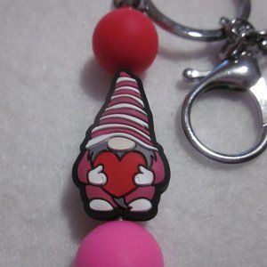 Red and Pink Gnome Keychain / Bag Charm / Valentine Keychain.
