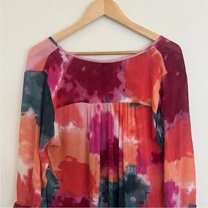 Red and Pink Pleated 3/4 Sleeve Blouse