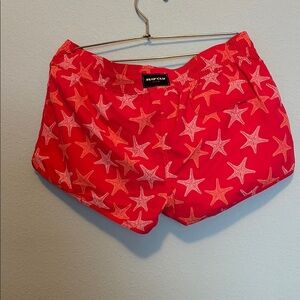 These athletic shorts feature a vibrant red base with playful pink stars, perfect for adding a pop of color to your workout gear. Designed with an elastic waistband, they offer a comfortable fit for any active pursuit. Their short length and dynamic design make them ideal for summer activities.