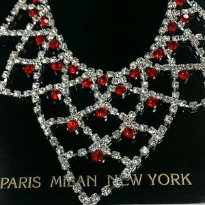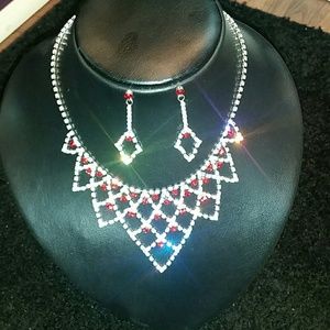 NIP, silver and red rhinestones, adjustable necklace, dangle earings, never worn, only taken out of package for picture, beautiful layered design, amazing quality and shine, great for prom, homecoming, wedding, pageants, parties, or any formal event.