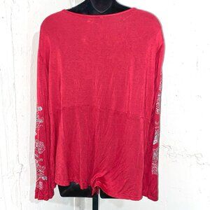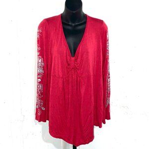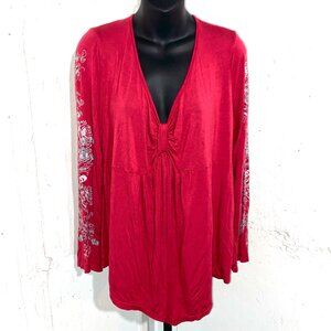 This Bright Red Long Sleeve 3XL top is so cute! Perfect for the holidays! Featuring gorgeous silver designed sleeves that will be sure to turn heads! Great neckline and cinched bust-line to show off your curves! Perfect condition, make me an offer!