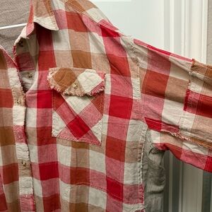 Red and Tan Plaid Button Down oversized shirt