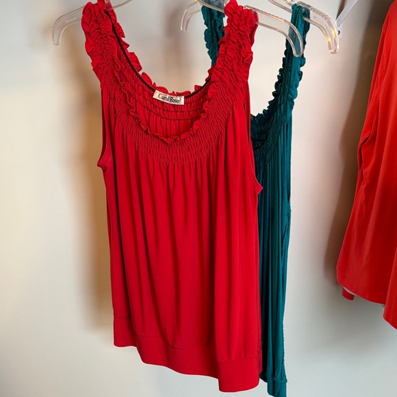Red and Teal Ruffled Tank Tops