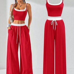 Red and White Casual Women's Sport Knit Tank Tops & Sweatpants