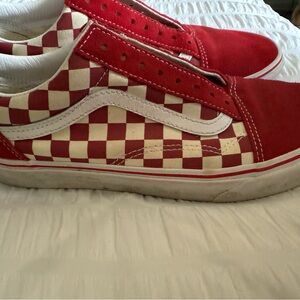 Stylish red and white checkered sneakers. Perfect for casual wear. Shoes need laces. 8 1/2 men’s, 10 women’s