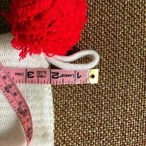 This sweater knit stocking comes with a hook and festive red pom pom. I’m guessing it’s from the 70s.