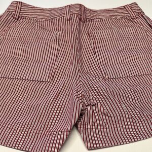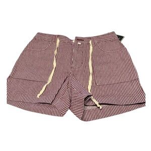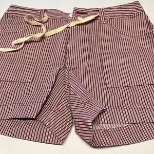 Red and White Flat Front Shorts with Drawstring