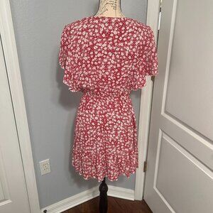 Adorable red with white flowers mini dress with short flutter sleeves from Shein. Elastic waist and v-neck - very flattering! Size large.