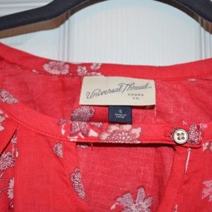 Red and White Floral Keyhole Neck Top