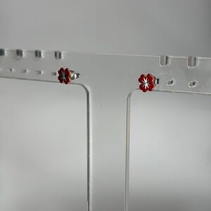 Add a pop of color to your outfit with these charming red and white flower earrings. Perfect for any occasion.