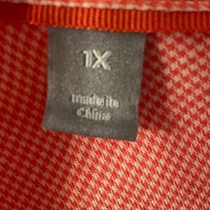 Red and White Gingham Checked Lightweight Button Down Womens Top Size 1X
