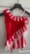 This vibrant red and white kids costume dress is perfect for playful occasions. Featuring a fun design with pom-pom details, it's sure to delight. Ideal for dress-up and themed events.