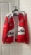 Stylish red and white jacket with bold Members Only branding. Features a zip-up front and unique graphic details.