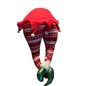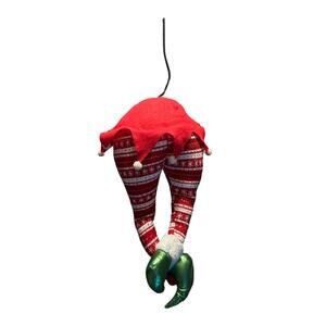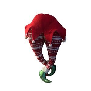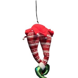 Red and White Striped Elf Legs with Green Shoes Christmas Decoration