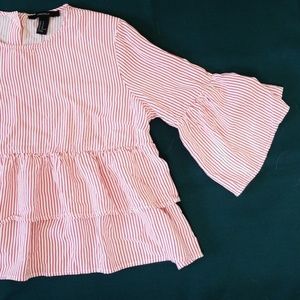 Red and White Striped Ruffled Top