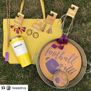 These sleek multi tassel hoop earrings are both playful and trendy! Add boho flair to your game-day ensemble with these earrings cast in your favorite team's colors. Faceted by fun cotton tassels in your favorite game day colors with gold accents, these earrings measure 2.75 inch long and 2 inch wide. Nickel and lead free. Clear rubber backs included.