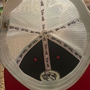 Red and White Trucker Hat with Curved Brim