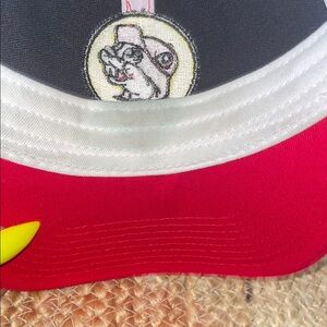 This vibrant trucker hat features a striking red front panel and a breathable white mesh back, offering a sporty and casual look. The curved brim adds a classic touch, making it perfect for everyday wear. A unique logo patch on the front adds a distinctive flair to this accessory.