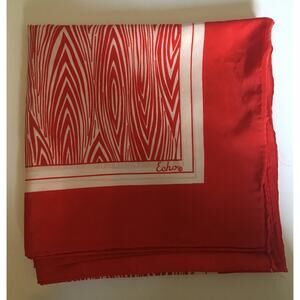 This is a Beautiful vintage scarf with a zebra like red and white print with a red border.