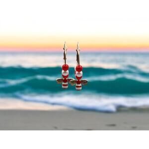 Red and white beaded bracelet with matching colored dangling bee charm with diamond rhinestones (Earrings to match available)