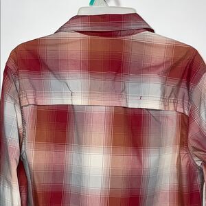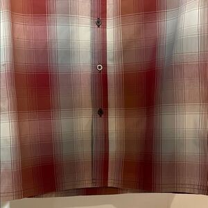 Red and White Casual Button Down Shirt with Plaid Pattern