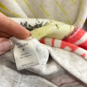 This eye-catching sweater features a striking red and yellow graphic print on a classic crew neck style. The long sleeves and ribbed cuffs add a touch of comfort, making it perfect for casual wear. Its dynamic design ensures you stand out in any crowd.
